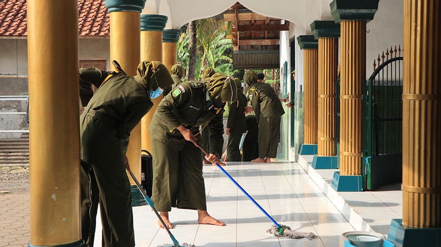 “Rangkaian peringatan HSN ini tidak hanya membersihkan tempat ibadah, kami juga melakukan potong tumpeng diseluruh masjid yang didatangi santri kami yang dibagi dari tiap tiap kelas. ” ungkapnya.