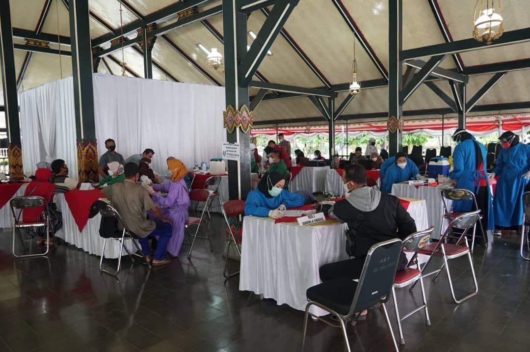 PURWOREJO, Infopurworejo.com – Tingginya antusias masyarakat untuk memperoleh vaksin Covid-19, membuat sentra vaksinasi di Pendopo Kabupaten Purworejo, Rabu (29/09/2021 dipadati warga. Bahkan konon ada warga yang sudah mengantre di depan gerbang pendopo sejak pukul 05.00 WIB.